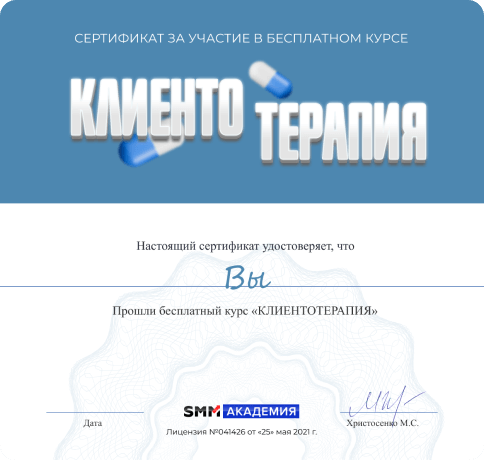 Все участники «Клиентотерапии» получат именной сертификат о прохождении обучения