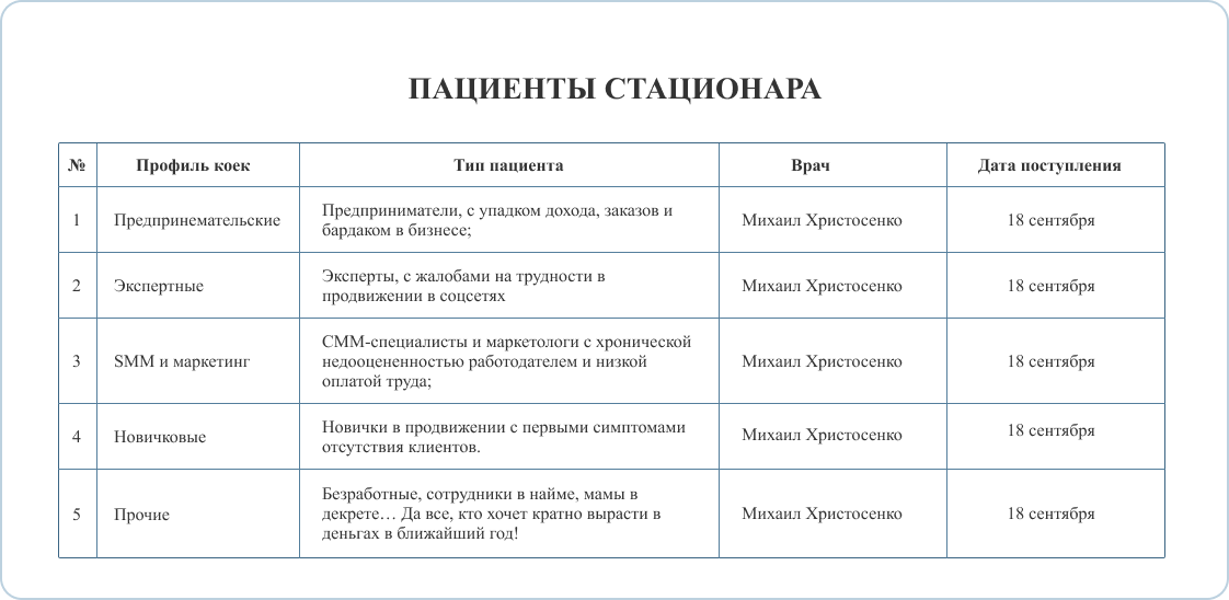 Главный врач SMM Академии, которая вылечила более 400 000 человек. За последний месяц мои пациенты заработали больше 10 000 000 ₽ с помощью нескольких продающих связок. И это не суперпродвинутые бизнесмены. Обычные предприниматели с доходом от 30 000 ₽ на старте.